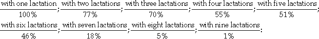 6% from the cows reach 8-9 lactations by the age of 11-12 years.
